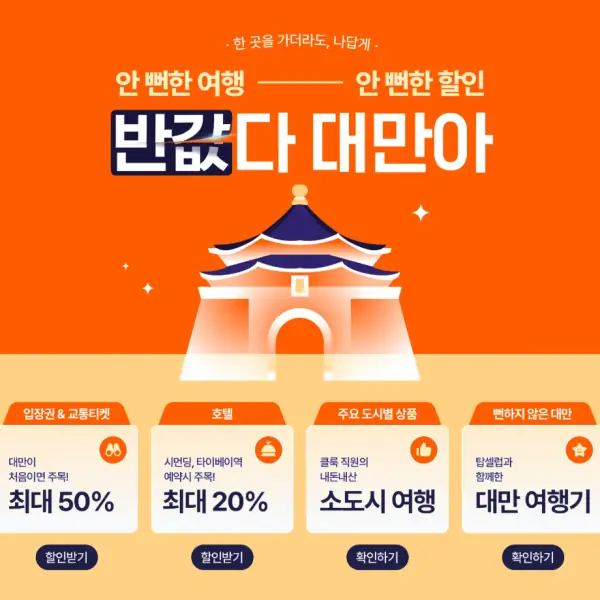 12월 반갑다 대만아, 뻔하지 않은 할인, 반값 대만 여행